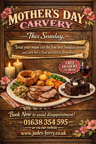 Situated along the River Lark in the Suffolks Fenlands, Judes Ferry offers a real slice of Suffolk beauty. A wide range of drinks can be found at our bar accompanied by a large restaurant offering high quality food throughout the week. A popular destination for boats and campers alike with generous mooring & camping sites available all year round.